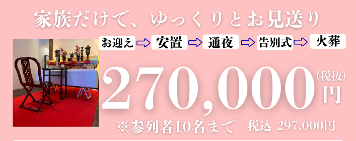 火葬料金、湯灌、食事代、寺院へのお布施などは含まれておりません。ご了承下さいませ。